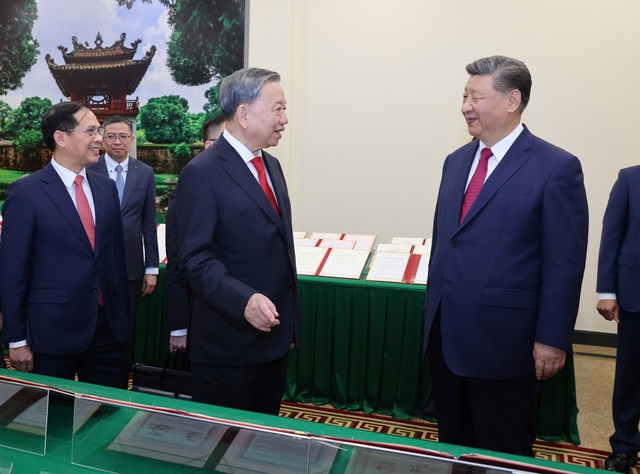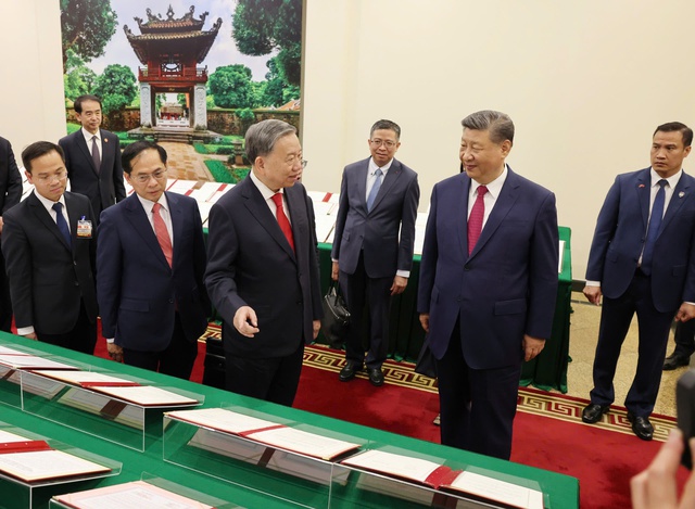 Sau hội đàm, Tổng Bí thư Tô Lâm và Tổng Bí thư, Chủ tịch Trung Quốc Tập Cận Bình đã cùng xem và nghe giới thiệu về 45 văn bản thỏa thuận hợp tác trên nhiều lĩnh vực được ký kết giữa các ban, bộ, ngành, địa phương hai nước, thể hiện thành quả phong phú, toàn diện mà hai bên đạt được trong chuyến thăm lần này.