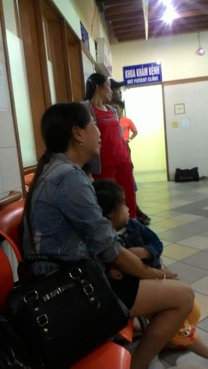 Trước cửa Khoa Cấp cứu (Bệnh viện Trung ương Huế), người vợ trẻ cùng con gái 2,5 tuổi không ngừng than khóc, cầu mong người chồng trẻ qua cơn nguy kịch.