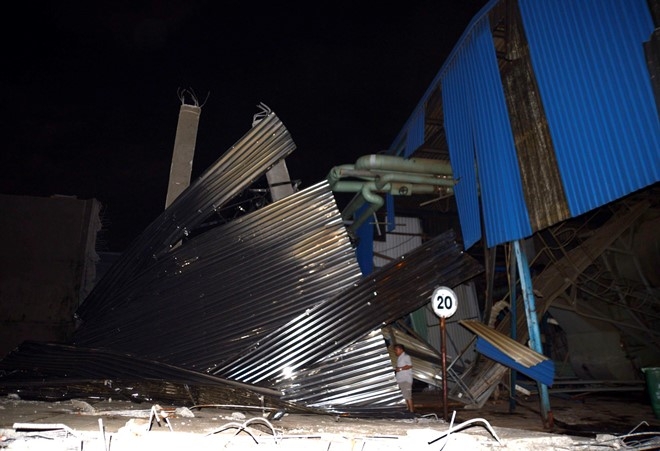 | Bồn nước có sức chứa 1.200 m3 bị đổ sập hoàn toàn. Ảnh: Lê Trai. |