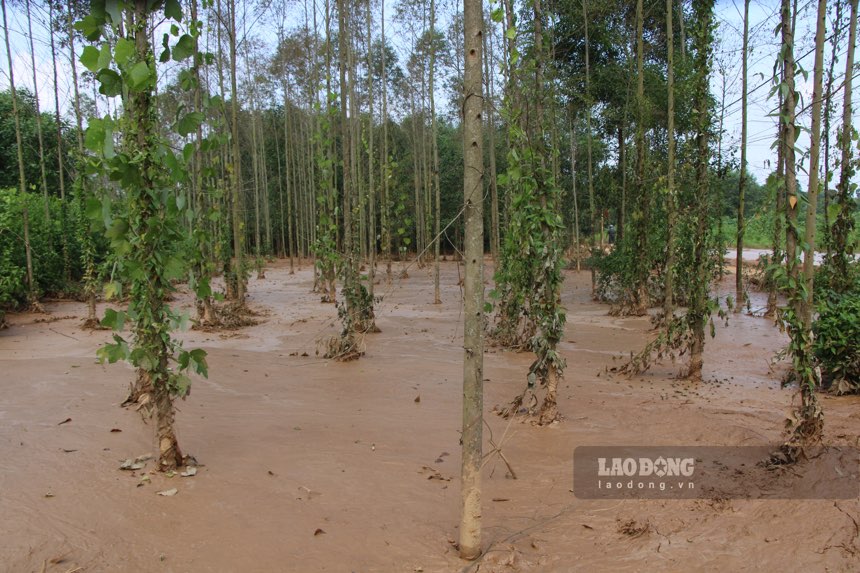 Người dân địa phương cho biết, sự việc xảy ra vào sáng 7.10, họ phát hiện bùn từ khu vực hồ chứa tràn xuống.
