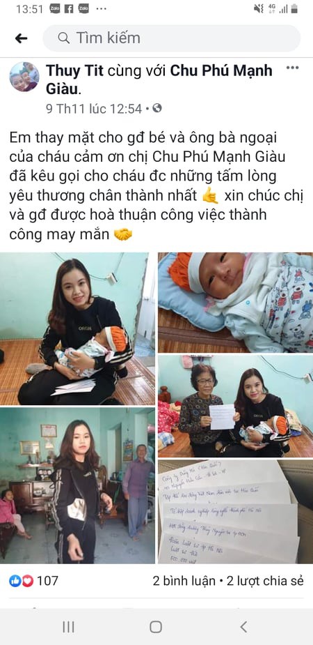 Sự ra đi của vợ khiến anh Vũ Văn Hoài, SN 1976 (Đoàn Lập, Tiên Lãng, Hải Phòng) đang công tác trong Nha Trang sốc nặng. Về nhà lo tang sự cho vợ, chăm con thiếu vắng hơi mẹ, anh Hoài vật lộn, xoay sở chống đỡ. Bị dứt sữa mẹ đột ngột, cho sữa bột cũng không uống, bé Vũ Gia Hưng, SN 17/10/2019, khóc ngằn ngặt thèm sữa mẹ. Lòng quặn thắt thương con, cực chẳng đã, anh Hoài đành nhờ em vợ lên mạng đăng đàn xin trợ giúp nguồn sữa mẹ cho con.