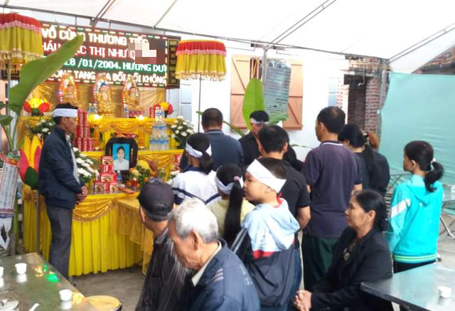 Cách đó gần 1km là gia đình nữ sinh Ph. (khu dân cư An Bài). Từ chiều tối qua, người thân họ hàng có mặt tại gia đình nạn nhân để cùng lo công việc hậu sự. 8h sáng nay, lễ khâm liệm cho nữ sinh Ph. được cử hành.