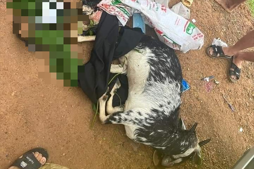 Tới khu vực này, nhóm này đã bắn chết 2 con dê của người dân, cho vào cốp xe ôtô rồi đi về. Khi đến khu vực cầu Ái Nàng (xã An Phú), cả 3 bị người dân phát hiện và chặn lại.
