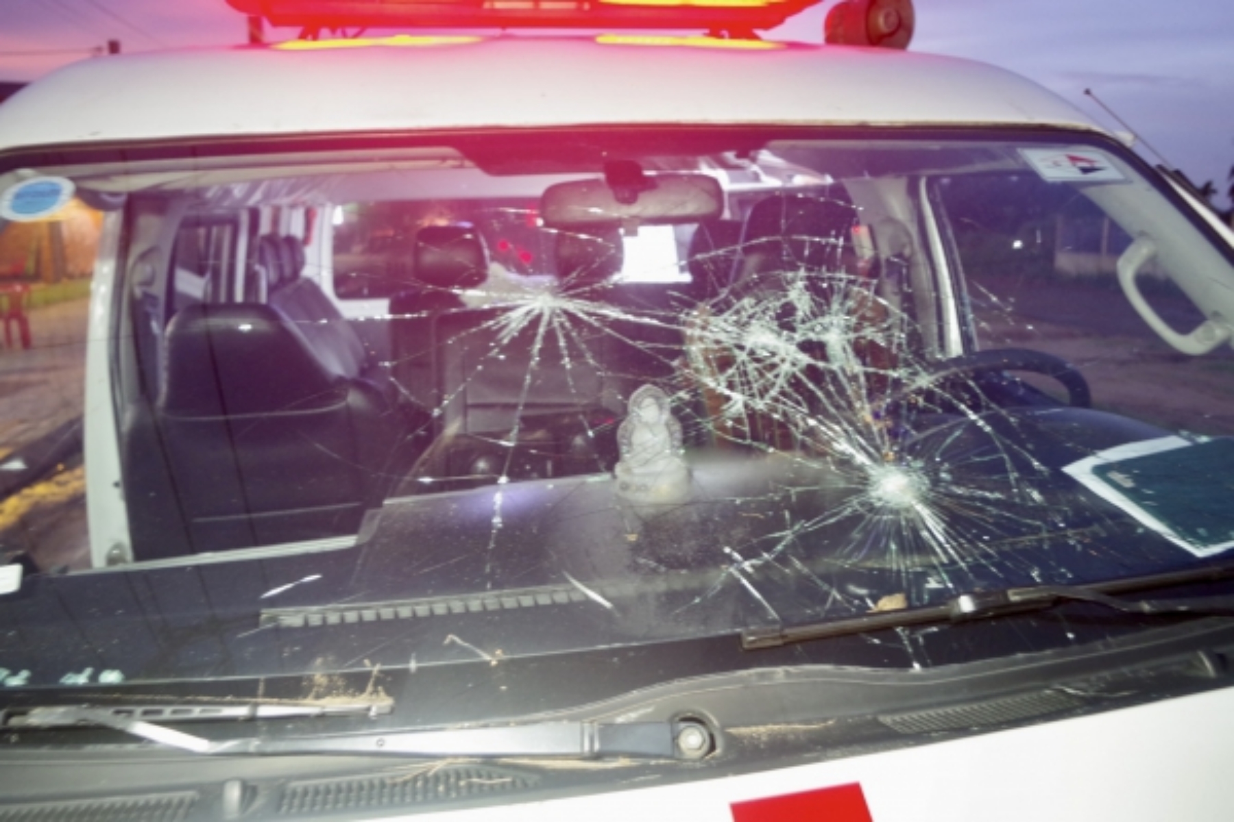 Qua xác minh, ghi nhận xe cấp cứu bị hư hỏng nhiều bộ phận như kính chắn gió trước, cửa kính chắn gió, kính gương chiếu hậu, cốp đầu xe...