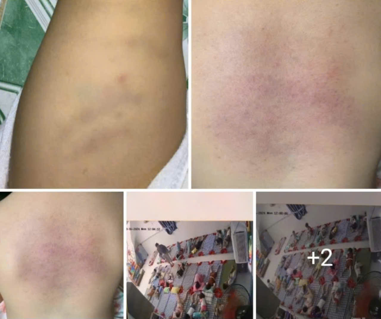 Cháu bé này sau đó được xác định là T.K.Q (SN 2023, trú tại xã Hàm Phú, huyện Hàm Thuận Bắc). Người nhà Q. phản ánh bé bị đánh vào lưng, tay, đầu dẫn đến thương tích nhiều vị trí.