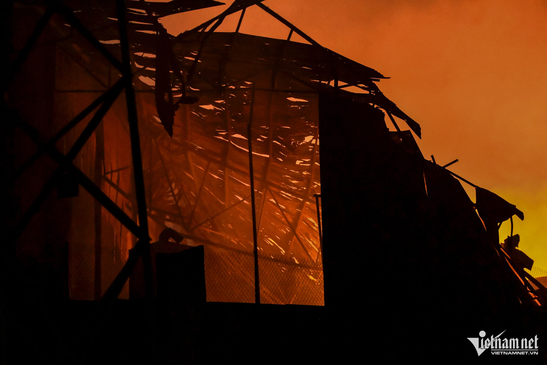 Ghi nhận của PV VietNamNet, 23h cùng ngày, khu vực quanh xưởng xảy ra hoả hoạn vẫn được phong tỏa nghiêm ngặt để đảm bảo an toàn. Bầu không khí xung quanh hiện trường vụ cháy nồng nặc mùi khét.