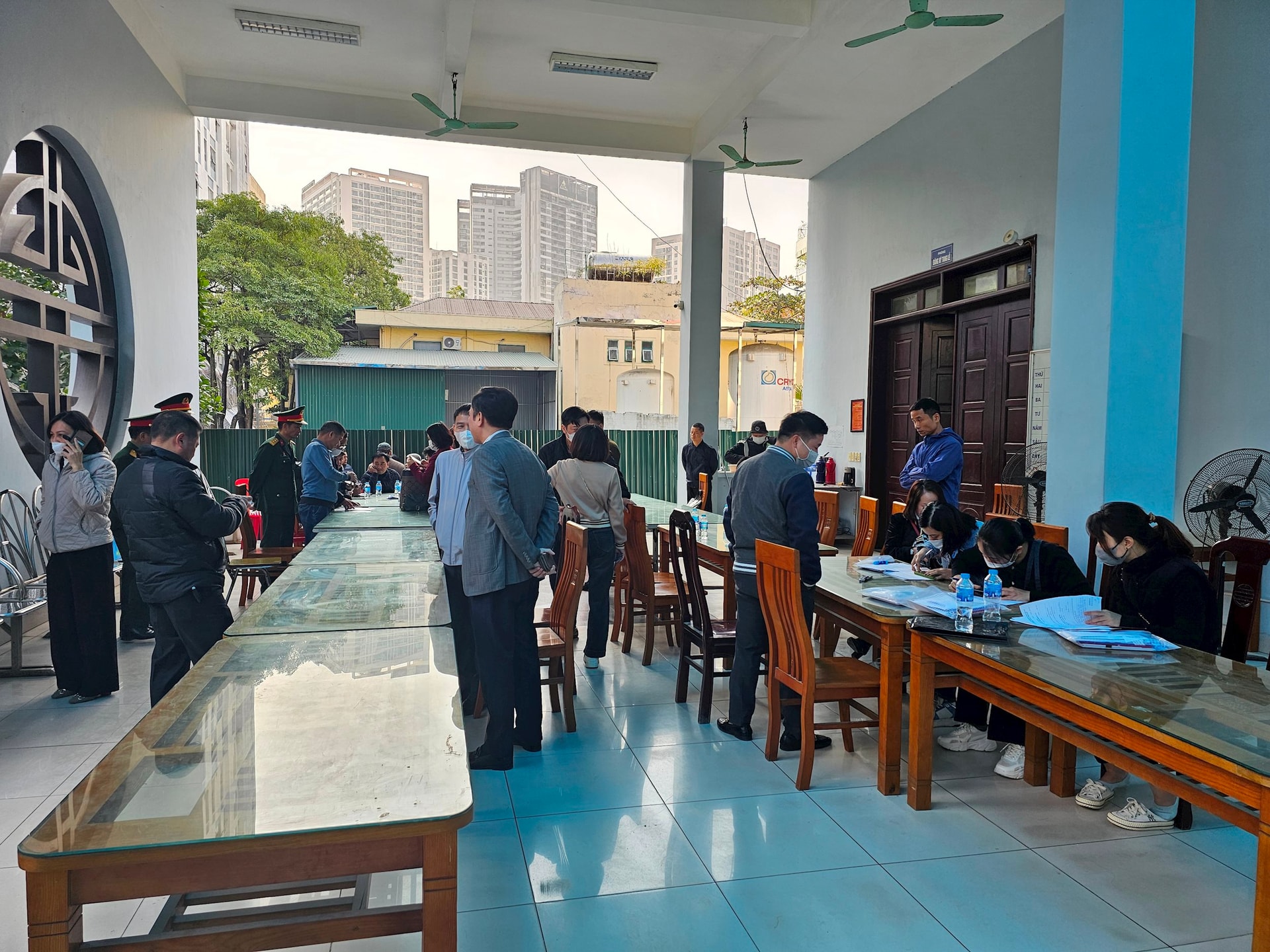 Trưa 19/12, nhiều người tập trung tại khu vực nhà tang lễ Bệnh viện 19-8 để tìm người thân là nạn nhân vụ cháy ở Cổ Nhuế 2.