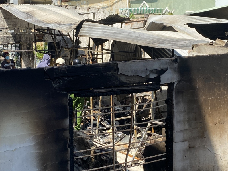 Tại hiện trường, 2 căn nhà cấp 4 gồm 1 trệt và gác gỗ bị cháy rụi, đổ sập, nhiều tài sản bên trong căn nhà bị cháy hoàn toàn; 1 số căn nhà kế bị cháy sém.