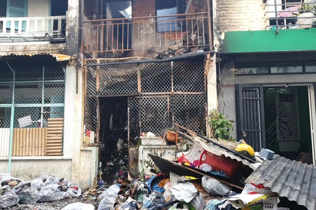 Theo ghi nhận của PV sáng 6/12, căn nhà cấp 4 xảy ra cháy gồm một trệt, một lầu nằm sâu hẻm, đồ đạc bên trong được di dời ra ngoài, nằm ngổn ngang phía trước; mảng tường bê tông ở lầu 1 bị bong tróc do sức nóng.