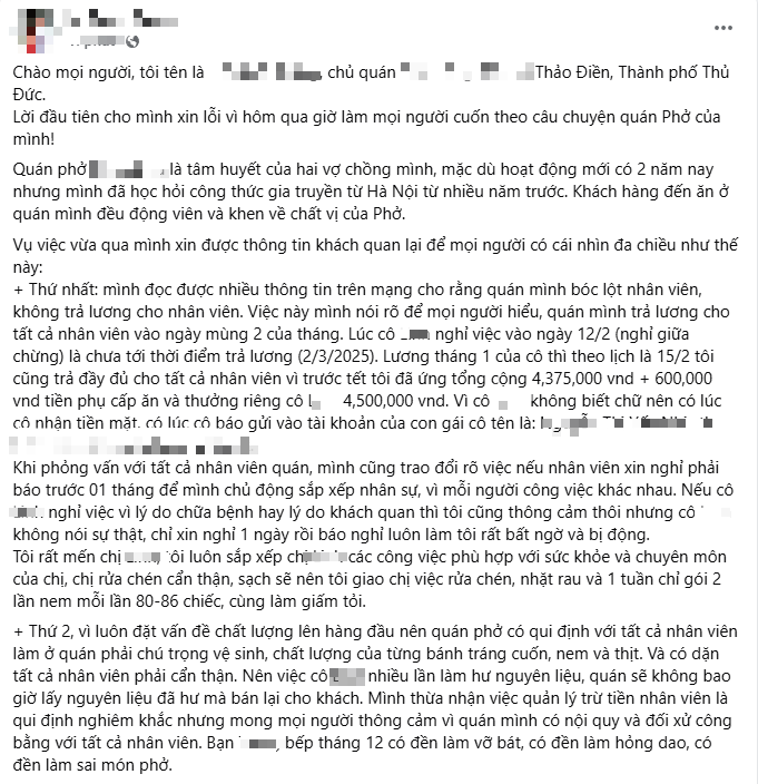 27/02/2025 17:01Vụ chèn ép nhân viên gây bức xúc: Chủ quán phở lên tiếng nhưng cộng đồng mạng chỉ quan tâm điều này