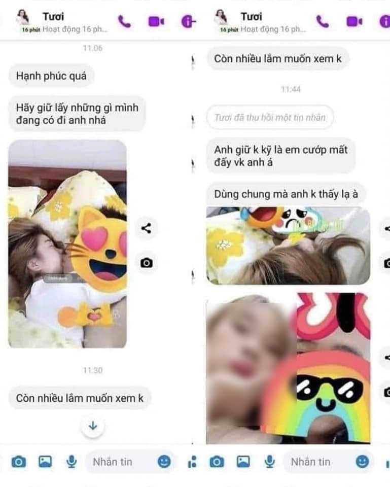 Đính kèm với bình luận là đoạn tin nhắn như: “Hạnh phúc quá, hãy giữ lấy những gì mình đang có anh nhá; còn nhiều lắm muốn xem không. Anh giữ không kỹ là em cướp đấy, vợ anh á”. Đỉnh điểm là tin nhắn chạm vào lòng tự ái người đàn ông: “Dùng chung mà anh không thấy lạ à”.