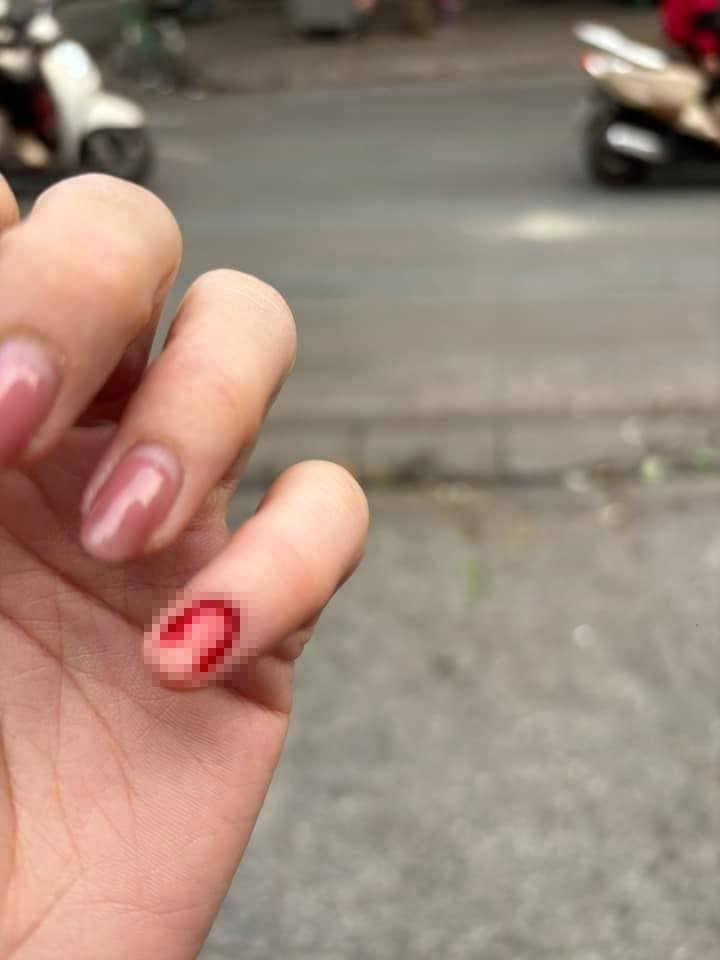 Theo chia sẻ của cô gái, cô đã bị nhân viên quán cháo bẻ gãy móng tay, kèm theo đó là bức ảnh chụp ngón tay út bị chảy máu.