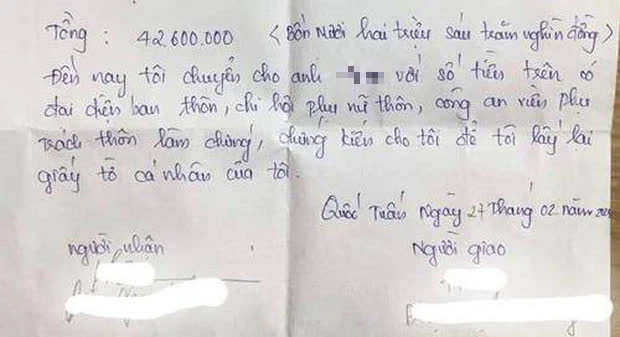 "Lúc trước vợ chồng có mâu thuẫn, chính quyền và đại diện thôn cũng đã có mặt để hòa giải. Hiện tại hai vợ chồng vẫn chưa làm thủ tục ly hôn và đang chung sống với nhau. Về việc lập biên bản bàn giao là chuyện riêng giữa anh H. và chị H. tự thỏa thuận với nhau, chính quyền địa phương không can thiệp. Vì nếu có tranh chấp về tài sản thì hai vợ chồng không thể tiến hành các thủ tục ly hôn được", ông Thắng cho biết thêm.