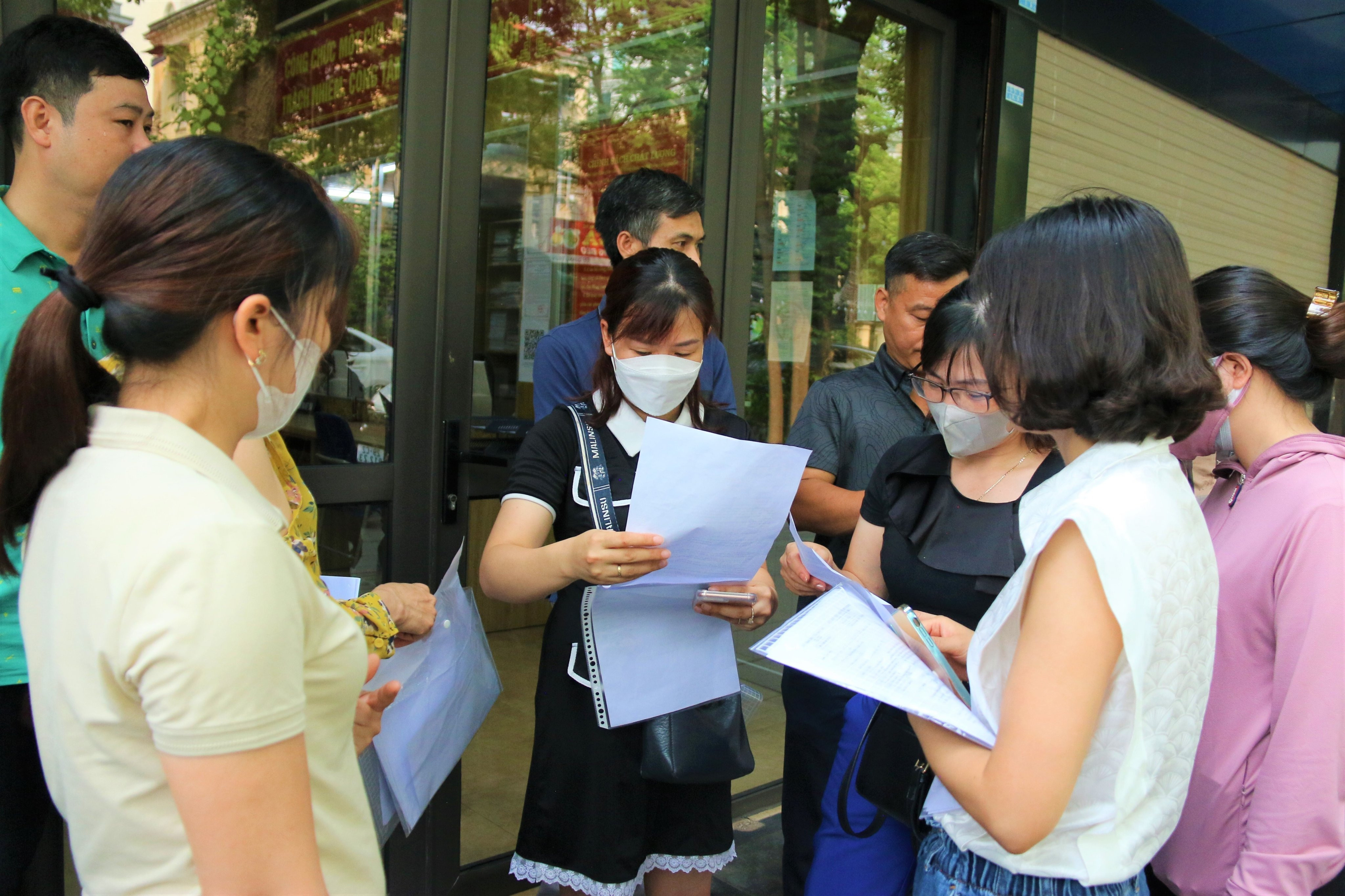 Sáng nay, gần 30 phụ huynh có mặt đã cùng nhau ký đơn kiến nghị và nộp đơn tại Bộ phận tiếp nhận hồ sơ và trả kết quả của Sở GD-ĐT Hà Nội liên quan đến vụ việc đề thi môn Toán vào lớp 10 bị in mờ.