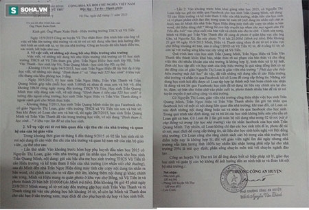 Kết luận của công an huyện Vũ Thư thể hiện rõ việc cô giáo Nguyễn Thị Loan có liên quan đến ba học sinh Hiệu, Minh, Thanh trong việc những em này xuyên tạc, vu khống thầy hiệu trưởng. |