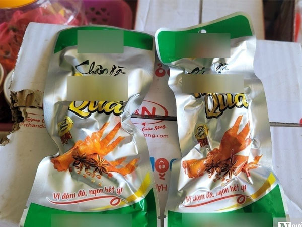 Trong quá trình bán hàng đã phát hiện em Q. lấy một số chân gà (loại đã chế biến sẵn đóng gói) dắt vào bụng nên cầm tay giữ em này, yêu cầu trả lại. Khi kiểm tra thì phát hiện trong người Q. đang giấu 7-8 gói chân gà.