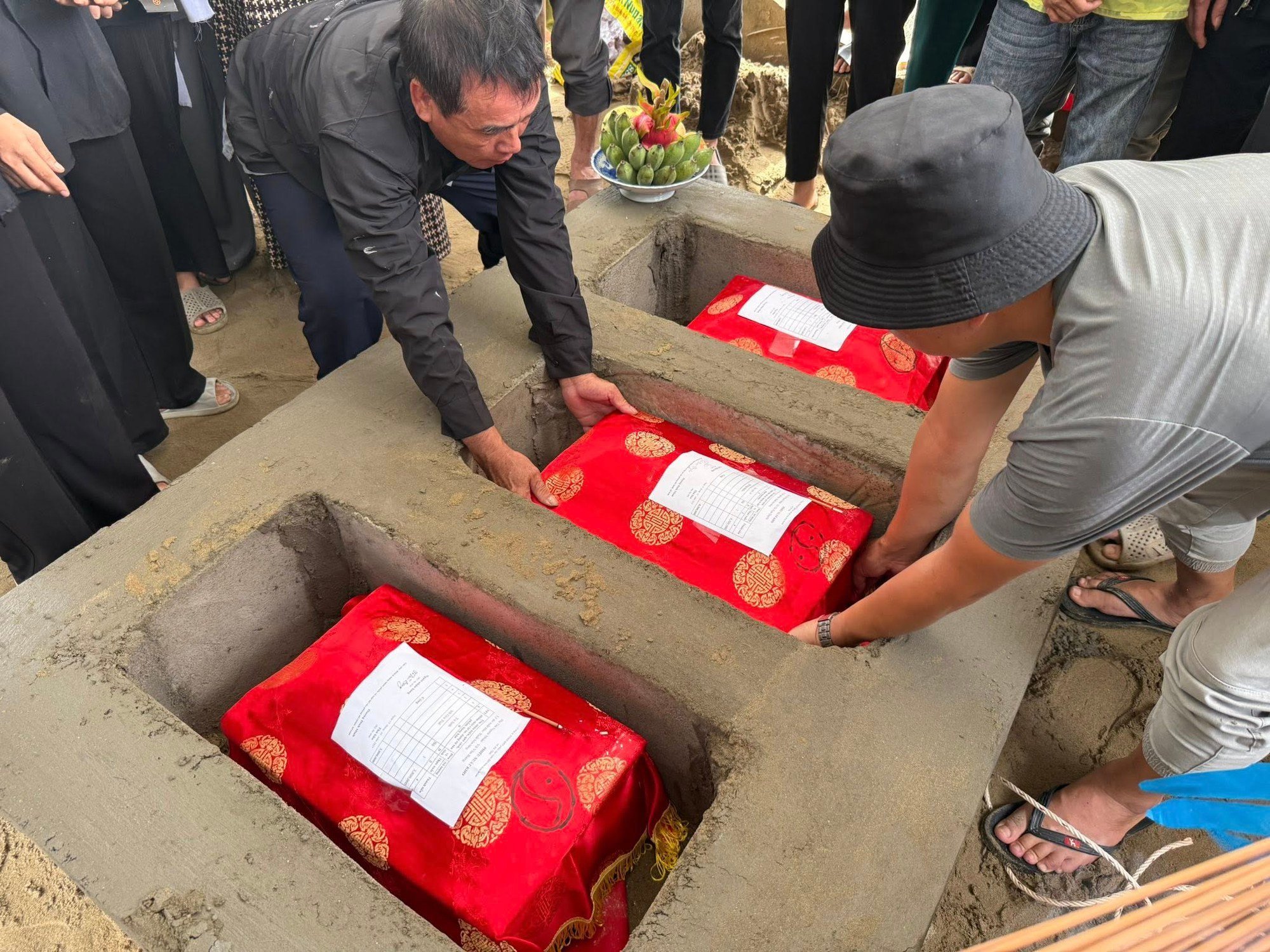Những hình ảnh tang lễ của 3 bố con vào được tổ chức vào ngày 16/10 đã khiến nhiều người không khỏi xót xa. Ba chiếc quan tài được đặt cạnh nhau, tiếng khóc nghẹn của người thân, đặc biệt là người mẹ trẻ…cảnh tượng ngập trong bi thương.