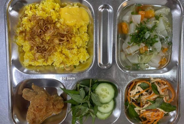 Trước đó vào trưa 17/11, học sinh trường iSchool Nha Trang tổ chức ăn bán trú cho 930 học sinh, chia làm 2 suất trưa và xế. Cơm trưa có gà sốt trứng, gỏi gà, cánh gà chiên, canh (xương + cà rốt + cải thảo), dưa leo. Bữa xế có bánh ngọt, uống nước tại hệ thống lọc của trường.