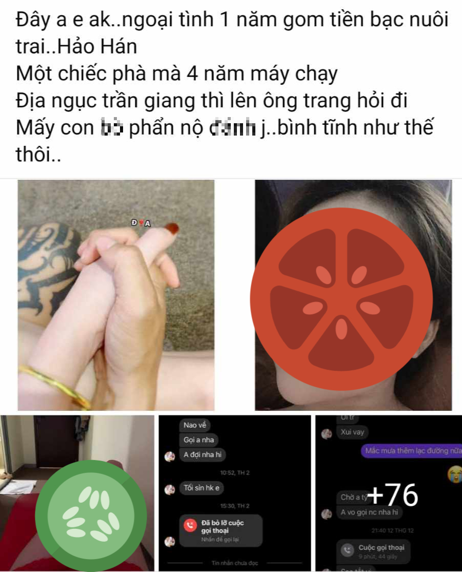 Ngày 3/3, nhiều tài khoản mạng xã hội ở Cà Mau chia sẻ vụ ngoại tình có 1-0-2 từ facebook cá nhân có tên S.H. Anh này tố cáo vợ mình ngoại tình với cùng lúc 4 người đàn ông. Đi kèm bài đăng có rất nhiều đoạn tin nhắn được anh chụp lại. Tất cả đều là nội dung tình cảm mùi mẫn đến nhức mắt của chị A.L – vợ anh cùng 4 người đàn ông khác.