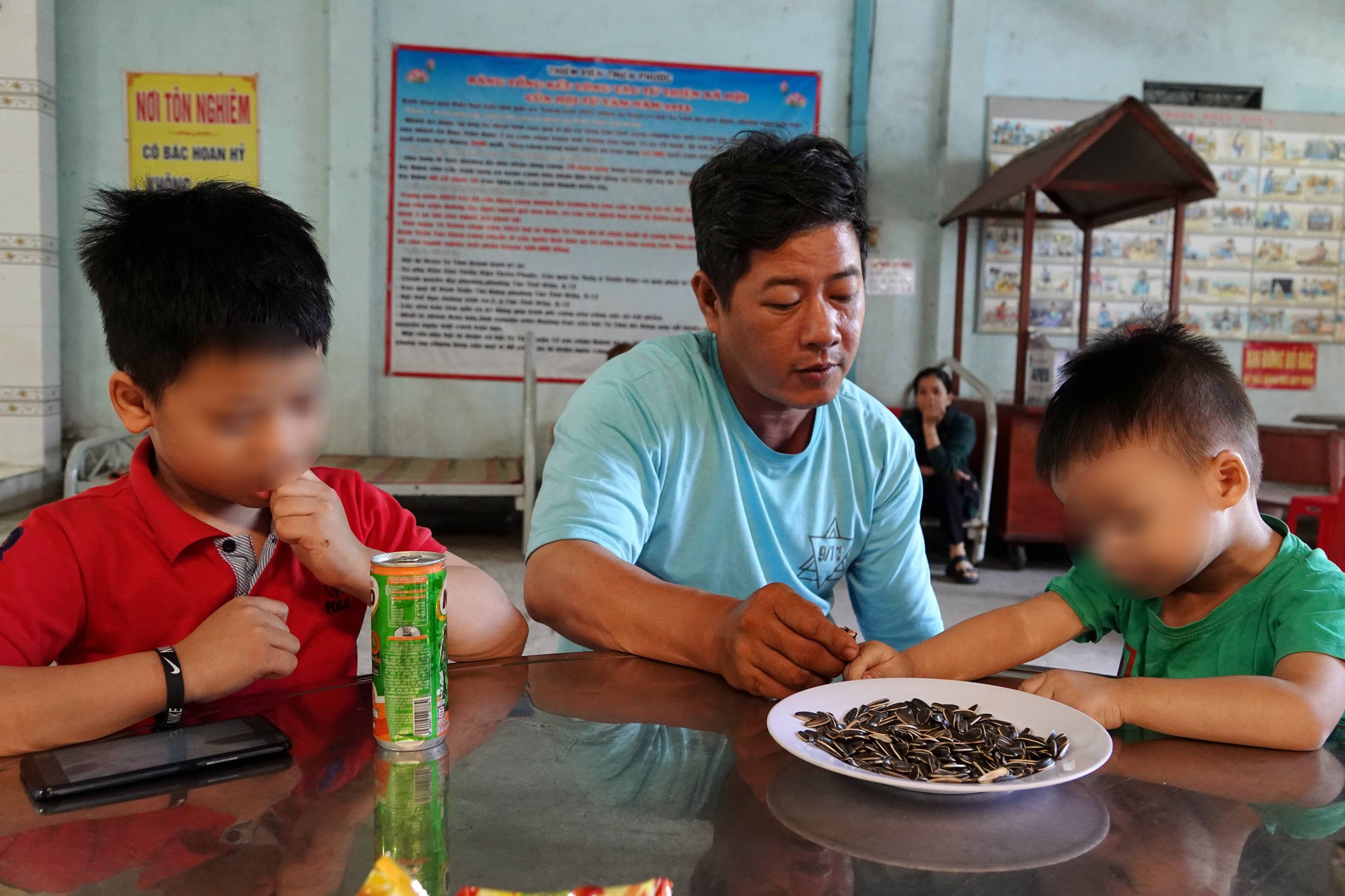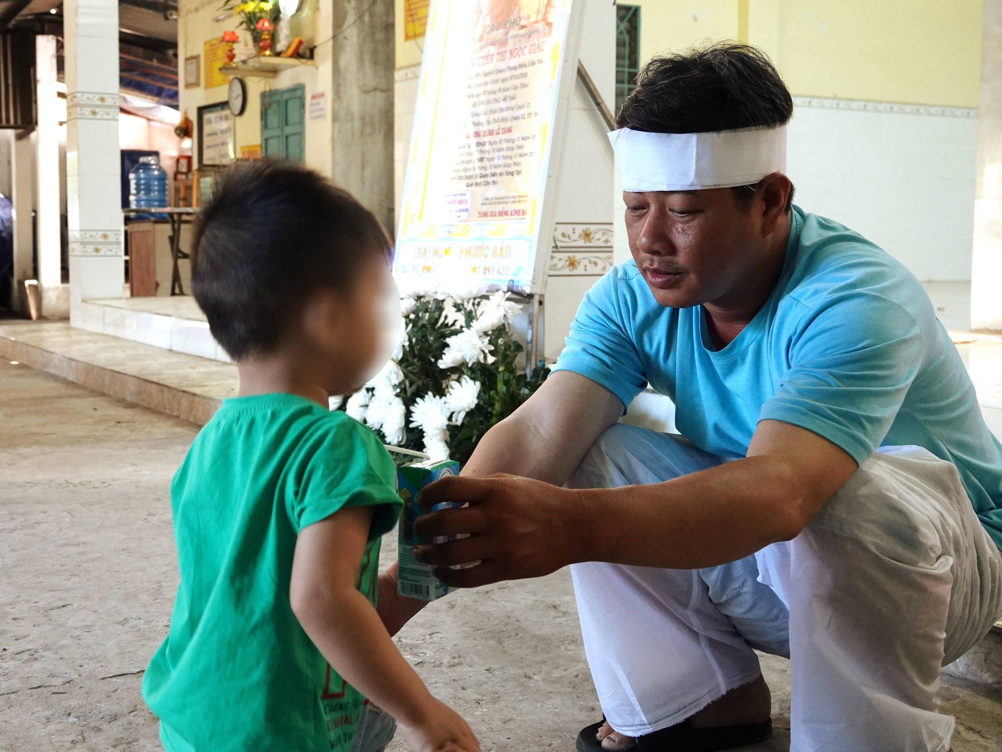 “Bé giữa (bé L.) thì cũng biết được rồi, còn bé cuối (bé B.) ngây thơ không biết gì đâu. Nó cứ đi lại bảo mẹ ăn cơm, hỏi mẹ đâu thì nó chỉ mẹ ở đây (PV- trên ban thờ). Tới giờ ngủ tối qua, nó cứ đòi mẹ ngủ cùng. Không ai ngủ được với nó hết á, chỉ có về ôm mẹ nó mới ngủ được.” anh Quang nghẹn ngào nhìn về phía con trai nhỏ nhất vẫn không ngừng quanh quẩn trước ban thờ mẹ.