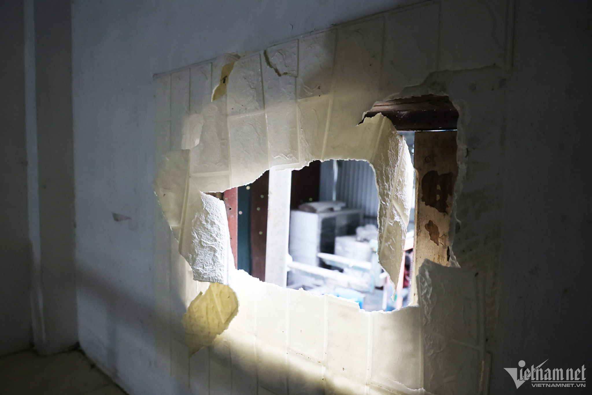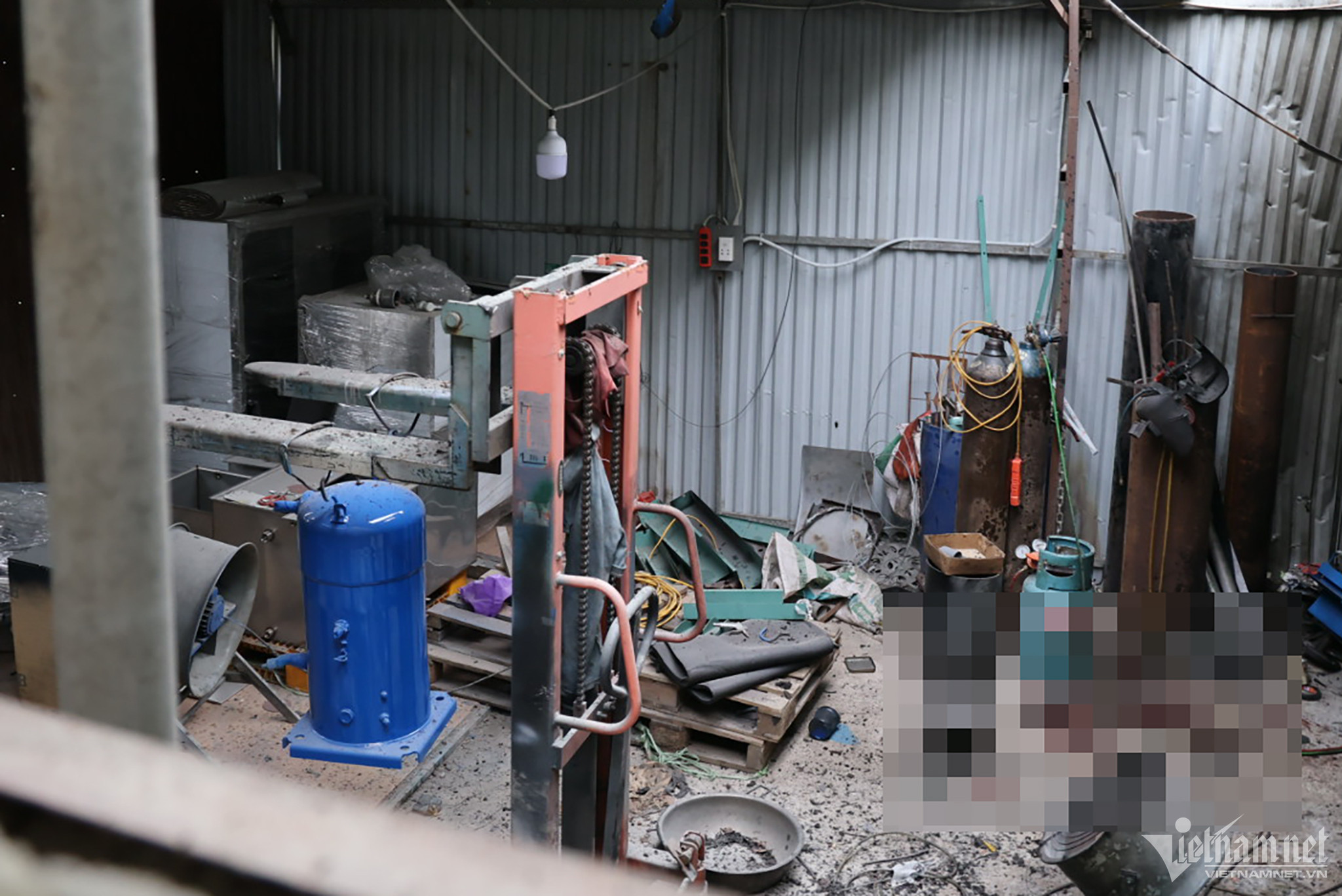 Cũng theo chị Trần Thu, một số mảnh vỡ văng ra từ vụ nổ khiến mái tôn của xưởng bị thủng bay về phía sau nhà hàng xóm.