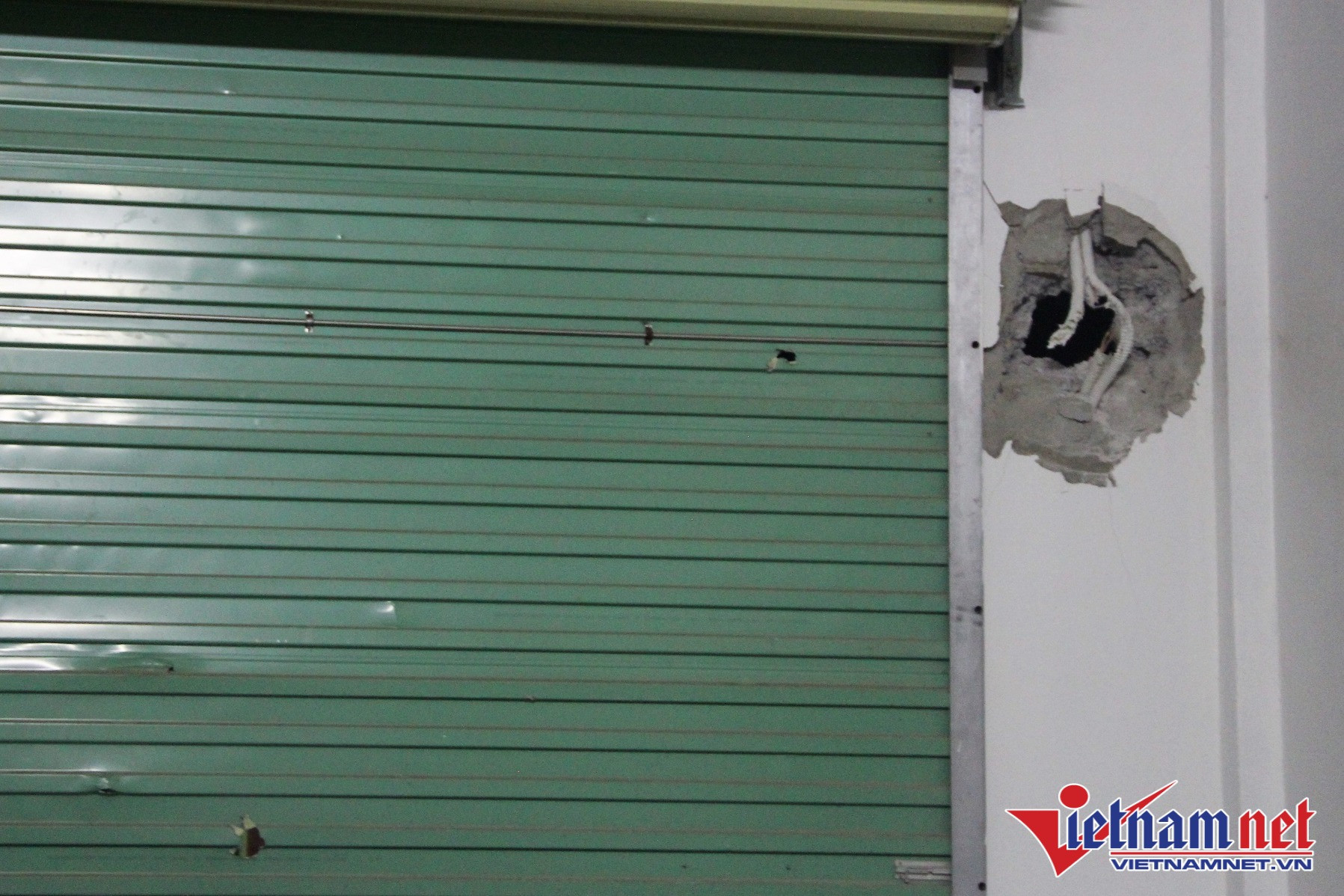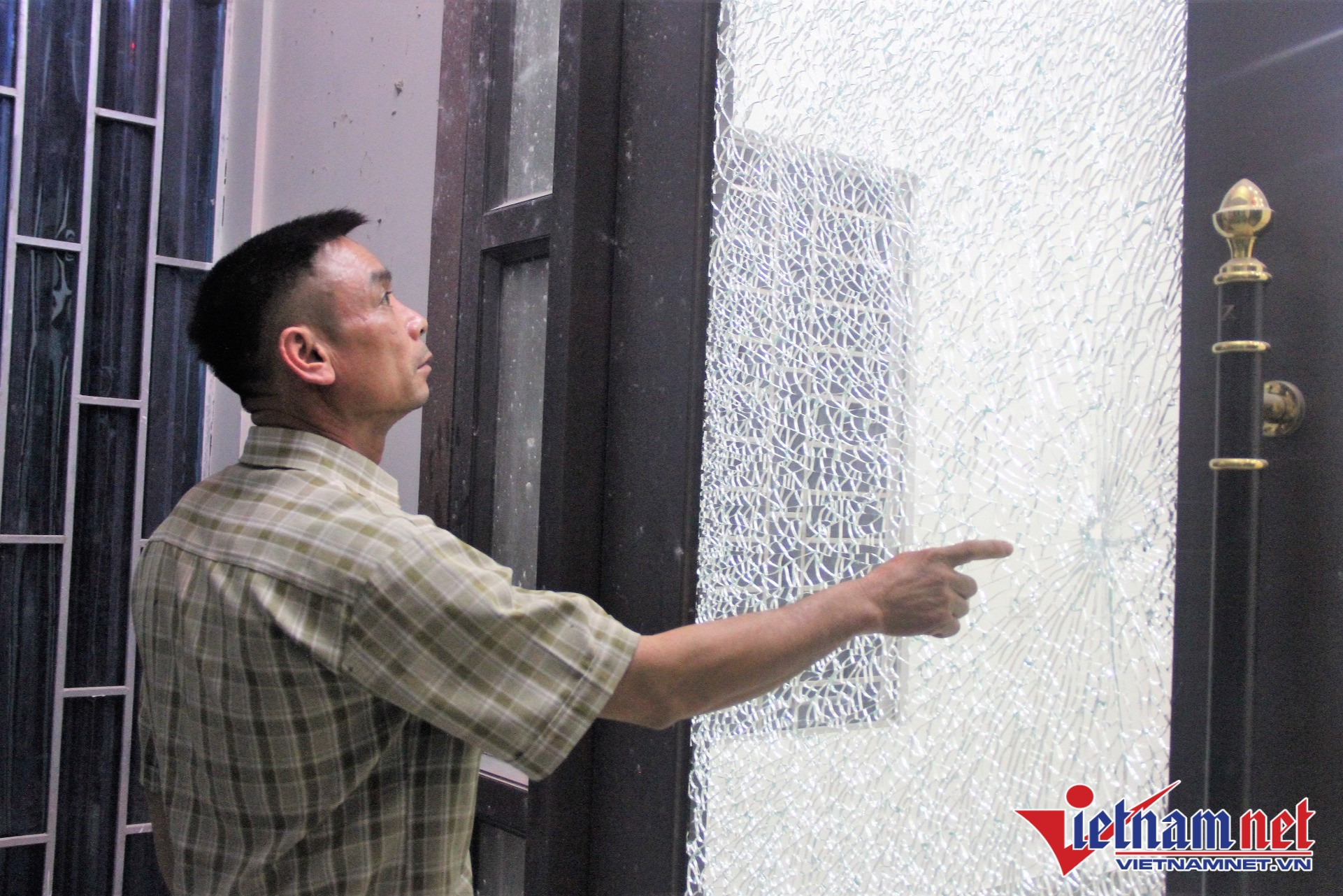 “Mặc dù lúc xảy ra vụ nổ, nhà tôi cửa đóng then cài nhưng cũng bị hư hỏng nhiều thứ. Sức ép của vụ nổ làm mảnh vỡ xuyên thủng bờ tường, cửa tôn bị rách nhiều vết nhỏ. Đặc biệt, cửa kính bền chắc như vậy nhưng bị nứt rạn cả một cánh, xuyên thủng một lỗ”, anh Thái cho biết.