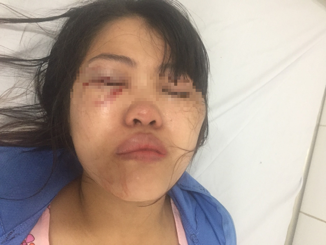 "Anh ấy đấm túi bụi vào mặt tôi với sức rất mạnh khiến mắt mũi tối sầm lại, thâm tím. Sau đó anh ấy còn đổ cồn lên người tôi dọa đốt. Hiện tại mắt tôi vẫn đau, đầu buốt và choáng váng, chắc tôi phải chuyển ra viện mắt để điều trị", chị Đ. cho biết.