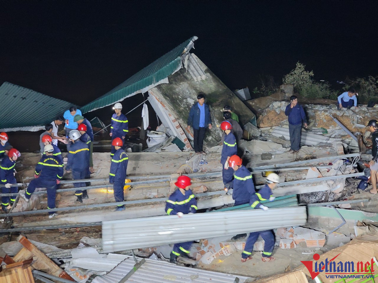 Có mặt tại hiện trường sáng 17/10, chúng tôi ghi nhận điểm sạt lở kéo dài tạo thành một bờ dốc thẳng đứng ăn sâu vào khu vực nhà người dân. Ngoài những ngôi nhà bị đổ sập hoàn toàn, những ngôi nhà xung quanh cũng có nguy cơ bị sạt xuống sông bất cứ lúc nào.