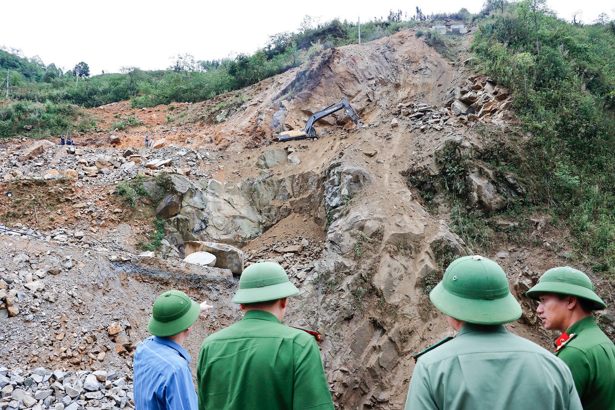 Đến 8h ngày 17/5, các lực lượng đã tiếp cận được hiện trường, bất chấp điều kiện thời tiết vẫn có mưa tại khu vực. Công tác tìm kiếm được tích cực triển khai.