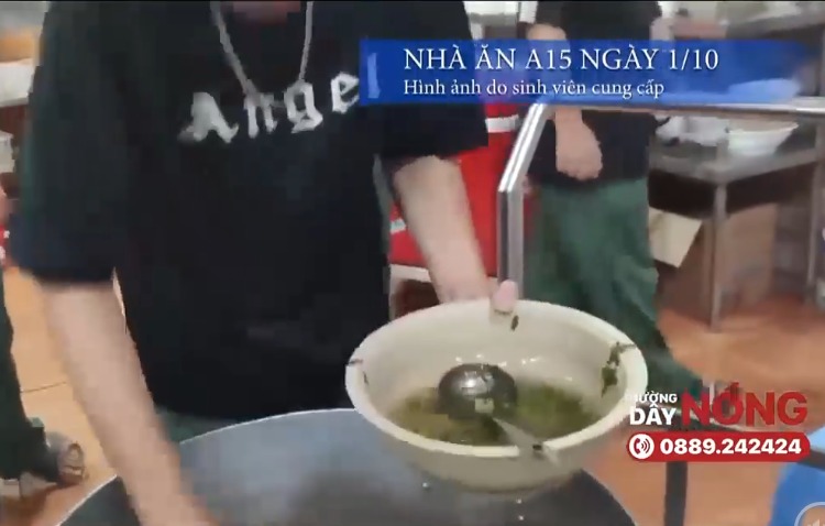 Không chỉ cơm thừa được tái sử dụng, những bát canh ăn dở của mỗi bàn cũng được một nhân viên của bếp ăn thu gom lại, đổ vào nồi. Chưa hết, ngoài cơm và canh bị quay vòng, bữa trước ăn thừa dùng cho bữa sau, các sinh viên còn phát hiện có nhiều dị vật bất thường trong thức ăn.