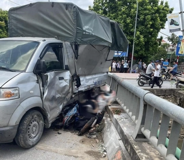 Sau va chạm, xe tải BKS 29C-597.75 tông vào xe máy biển kiểm soát 29B1-087.xx do chị N.T.H. (SN 1992; trú tại huyện Đan Phượng, TP Hà Nội) điều khiển chở theo 3 con là các cháu N.T.K.O. (SN 2011), N.T.T.M. (SN 2013) và N.T.S (SN 2015) đi chiều ngược lại. 4 mẹ con chị H. bị ép vào thành cầu, tử vong tại chỗ.
