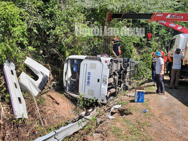 Được biết, thời điểm gặp nạn trên xe có 40 người, phần lớn có độ tuổi từ 45-47 tuổi, đều ngụ TP Đồng Hới (Quảng Bình). Một số nạn nhân cho biết khi xe đang xuống dốc thì có dấu hiệu đứt thắng nên sau đó lật qua phía taluy dương.