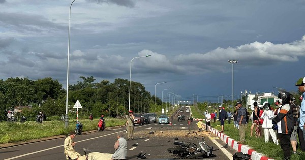 Tại hiện trường, 2 phương tiện bị hư hỏng nặng. Theo một số nhân chứng, chiếc xe mô tô đang chạy với tốc độ cao, sau khi tông vào xe máy đã lao lên dải phân cách hơn 100m mới dừng lại.