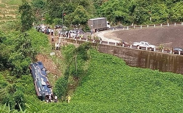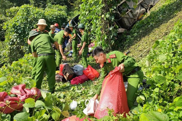 Tại hiện trường vụ tai nạn, khu vực xảy ra tai nạn là dốc dài, cua cùi chỏ, đồ đạc của hành khách vương vãi khắp nơi.