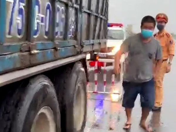 Quá trình làm việc, tài xế không khai báo họ tên, liên tục gọi điện thoại cho người nào đó. Trạm CSGT Hải Lăng báo cáo với lãnh đạo Phòng CSGT, Ban Giám đốc Công an tỉnh để xử lý cho kéo xe về trạm cân trọng tải.