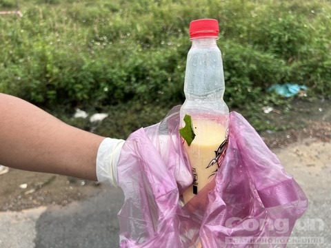 Ngoài ra công an còn thu giữ 1 chai nước ngọt có chứa dung dịch màu trắng đục, tài sản của thanh niên này vẫn còn nguyên.