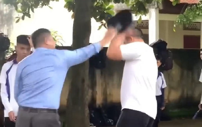 Như Báo Người Lao Động đã phản ánh, khuya 8-9, mạng xã hội đăng tải clip ghi lại cảnh một thầy giáo dùng thước gỗ đánh 4 cái vào người 1 nam sinh. Đồng thời, thầy giáo này tiếp tục dùng thước đánh 3 cái và dùng mũ bảo hiểm đánh 1 cái vào người nam sinh đứng bên cạnh.
