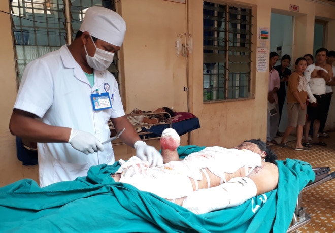 | Nạn nhân Hiến được điều trị tại Bệnh viện Đa khoa Đắk Lắk. Ảnh: Minh Quý. |
