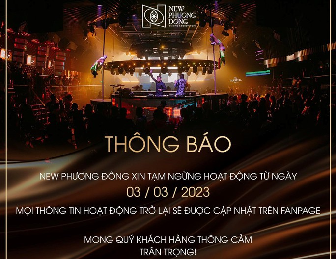 Trước khi thông báo chấm dứt hoạt động, vũ trường này đã tạm ngưng hoạt động từ ngày 3-3 với lý do nâng cấp hệ thống.