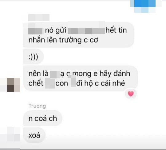 Nhóm học sinh này đã nói về N.H.A bằng những câu nặng nề như: "Xấu là một cái tội", "nhảy lầu đi", "bọn xấu phải biết vị trí của chúng ở xã hội",... Ngoài ra còn có những tin nhắn với nội dung quấy rối tình dục.