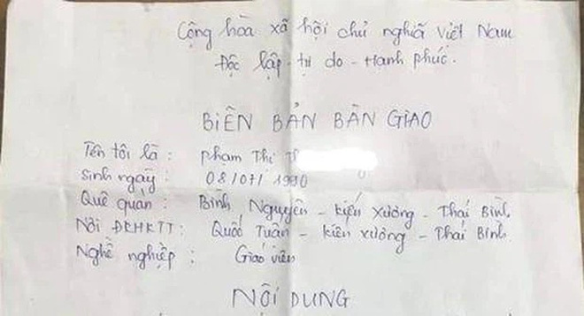 "Lúc trước vợ chồng có mâu thuẫn, chính quyền và đại diện thôn cũng đã có mặt để hòa giải. Hiện tại hai vợ chồng vẫn chưa làm thủ tục ly hôn và đang chung sống với nhau. Về việc lập biên bản bàn giao là chuyện riêng giữa anh H. và chị H. tự thỏa thuận với nhau, chính quyền địa phương không can thiệp. Vì nếu có tranh chấp về tài sản thì hai vợ chồng không thể tiến hành các thủ tục ly hôn được", ông Thắng cho biết thêm.