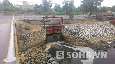 Cống nước ở khu vực cầu Văn Điển, thuộc thị trấn Văn Điển (Thanh Trì, Hà Nội) là nơi phát hiện xác hai mẹ con chị Duyên. |