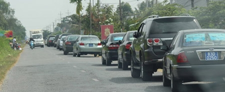 Đoàn xe công ăn giỗ ngày 19-12 mà TTO phản ảnh - Ảnh: T.Trình |