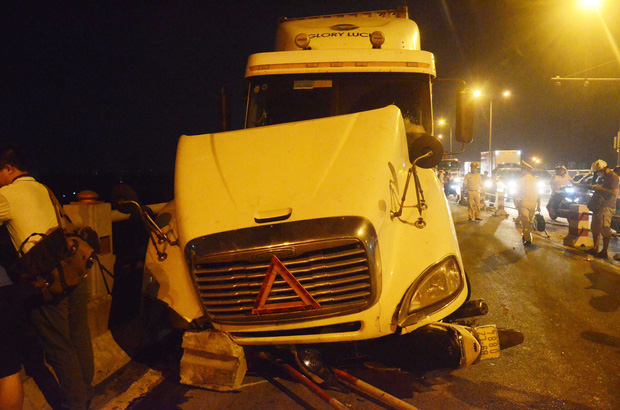 Trước đó, vụ tai nạn giao thông nghiêm trọng trên xảy ra vào 18h30 cùng ngày. Thời điểm này một chiếc xe container đang di chuyển trên cầu Thanh Trì thì bất ngờ mất lái đâm vào 3 chiếc xe máy.
