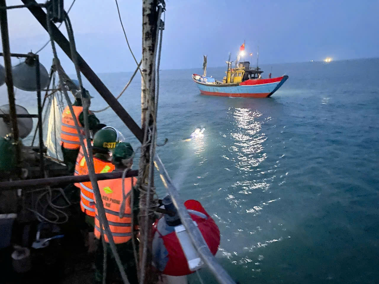 Sau nhiều giờ thuyết phục và vận động, đến 18 giờ cùng ngày, lực lượng ứng cứu đã áp sát, tước hung khí trên tay ông M và đưa người này lên tàu để vào bờ.