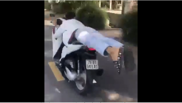 Trước đó vào ngày 12/5, trên mạng xã hội Facebook xuất hiện video ghi hình nam thanh đi xe máy trong tình trạng nằm hẳn trên yên xe. Đã thế người này còn không đội mũ bảo hiểm, lạng lách, gây nguy hiểm cho người đi đường.