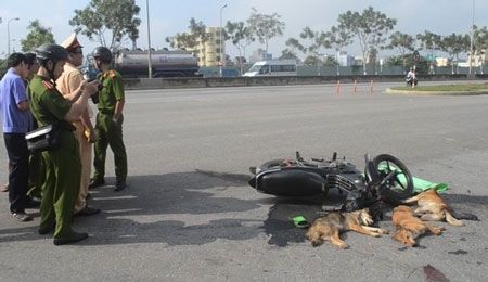 Hai thanh niên bị tai nạn chở theo 3 con chó bị đánh bả cùng nhiều bả chó |