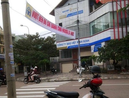 Một băng rôn với khẩu hiệu như trên được treo trên đường Mai Xuân Thưởng, TP Quy Nhơn |