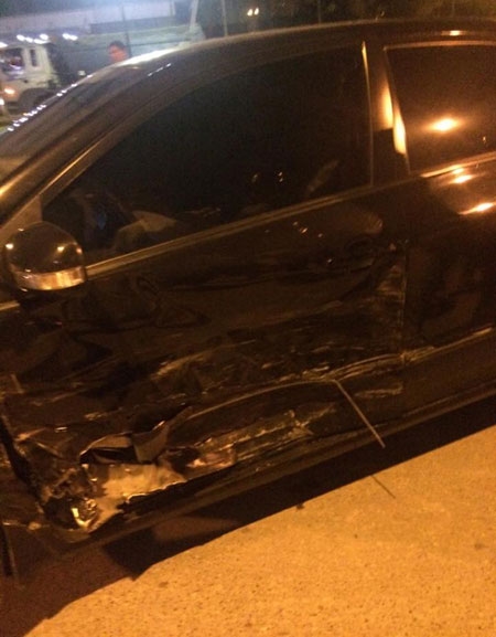 Đêm qua (29/9/2015), tại ngã tư Lê Văn Lương-Hoàng Đạo Thuý, một xe Altis mang biển số Nam Định phóng tốc độ cao đã va chạm với xe taxi sau đó mất lái, trèo qua dải phân cách phi sang làn đường đối diện.