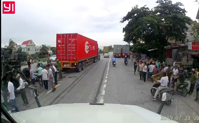 Đúng lúc này, chiếc xe tải lưu thông qua do không làm chủ được tay lái đã đâm vào giải phân cách giữa đường khiến nhiều người đang xem vụ tai nạn bị chiếc xe đâm trúng.